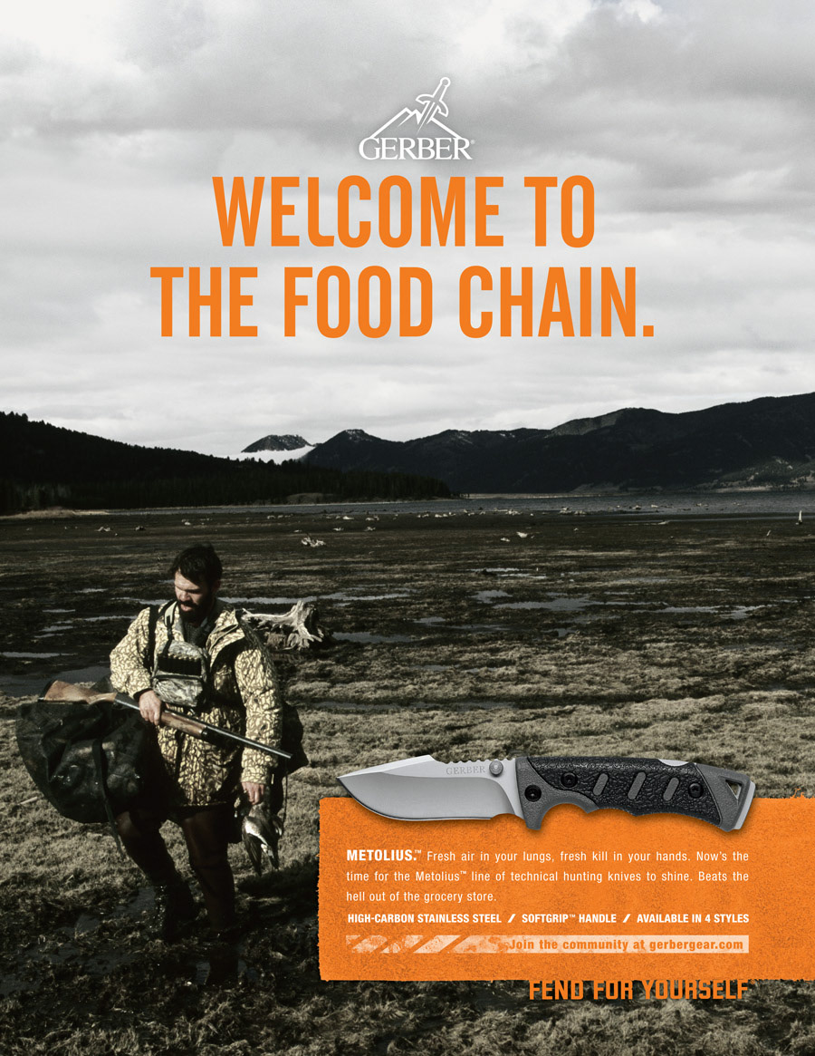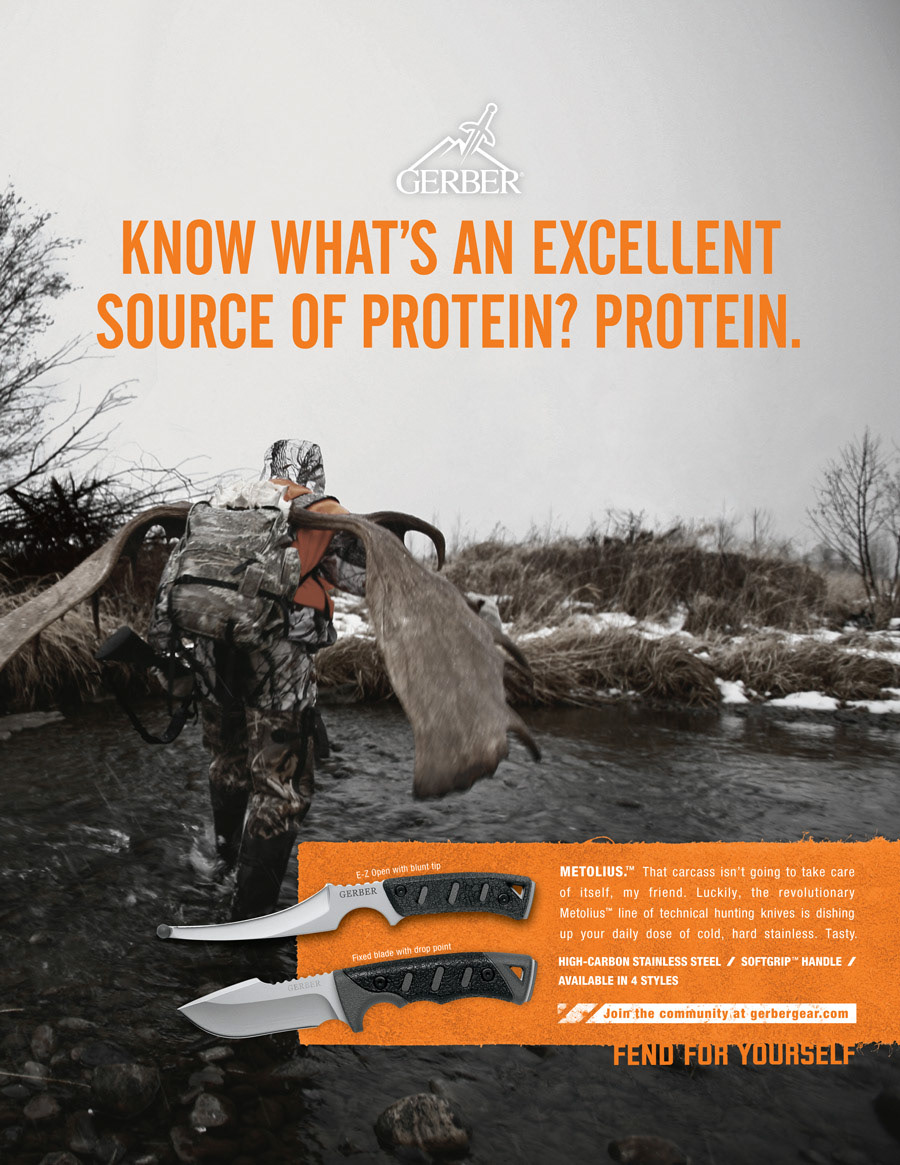 Gerber makes a lot of gear for everyone from hunters to hikers to military personnel. Luckily for me that meant a lot of fun copywriting. Here is some of my favorite print and poster work.